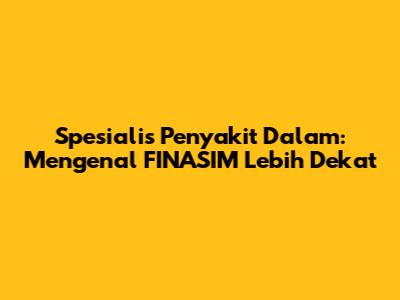 FINASIM adalah singkatan dari Fellow of Indonesian Society of Internal Medicine. Gelar ini diberikan kepada dokter spesialis penyakit dalam di Indonesia yang telah memenuhi standar kompetensi tertentu yang ditetapkan oleh Perhimpunan Dokter Spesialis Penyakit Dalam Indonesia (PAPDI). Mendapatkan gelar FINASIM bukanlah hal yang mudah. Seorang dokter harus menyelesaikan pendidikan spesialisasi penyakit dalam yang ketat dan lulus ujian sertifikasi yang komprehensif. Gelar ini menunjukkan bahwa dokter tersebut memiliki pengetahuan, keterampilan, dan pengalaman yang memadai untuk memberikan pelayanan medis yang berkualitas tinggi kepada pasien dengan berbagai masalah kesehatan internal.