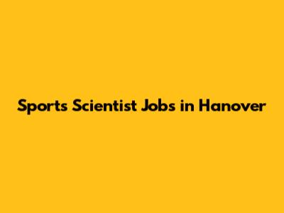Sports Scientist Jobs In Hanover