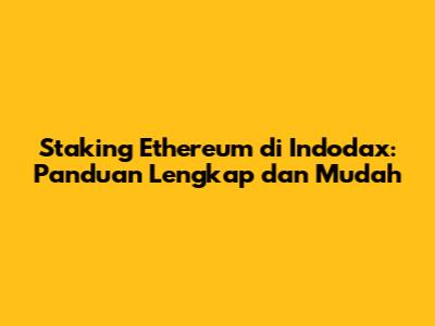 Staking Ethereum Di Indodax: Panduan Lengkap Dan Mudah