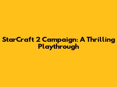 StarCraft 2 Campaign: A Thrilling Playthrough
