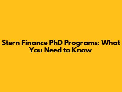 Stern Finance PhD Programs: What You Need To Know
