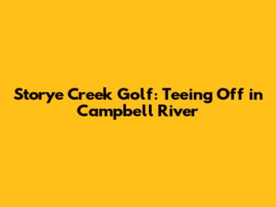 Storye Creek Golf: Your Guide To Campbell River's Gem