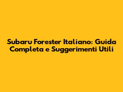 Ciao amici appassionati di Subaru! Se siete alla ricerca di informazioni dettagliate e consigli pratici sul Subaru Forester italiano, siete nel posto giusto. In questo articolo, esploreremo a fondo questo fantastico SUV, offrendo una guida completa che vi aiuterà a conoscere ogni aspetto del vostro veicolo. Preparatevi a scoprire tutto, dal manuale Subaru Forester italiano alle migliori strategie per la manutenzione e la guida sicura. Siete pronti a partire?