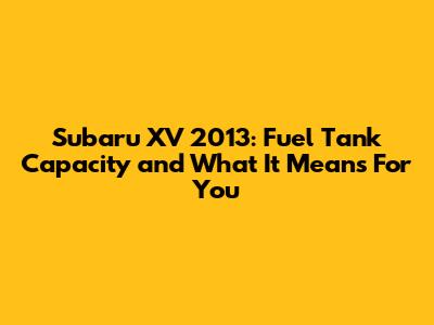 Hey guys! Let's dive into something super practical for all you Subaru XV 2013 owners or potential buyers: the fuel tank capacity. Knowing this detail isn't just about bragging rights; it seriously impacts how you plan your road trips, your refueling habits, and even your overall budget. So, buckle up as we explore everything you need to know about the Subaru XV 2013's fuel tank.