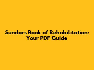 Sundar's Rehabilitation Book: Your PDF Guide