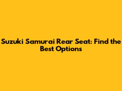 Suzuki Samurai Rear Seat: Find The Best Options