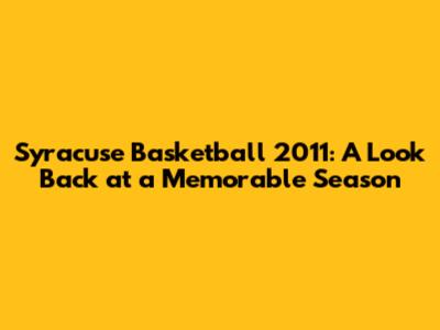 The Legacy of the 2011 Syracuse Basketball Team