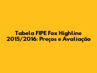 Hey guys! Thinking about buying or selling a Fox Highline 2015/2016? Understanding its value is super important, and that's where the Tabela FIPE comes in handy. This article will dive deep into the Tabela FIPE for the Fox Highline 2015/2016, giving you all the insights you need to make a smart decision. We'll explore what the Tabela FIPE is, why it matters, and how to use it to your advantage. Let's get started!