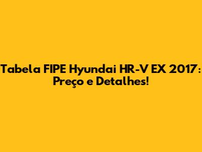 Tabela FIPE Hyundai HR-V EX 2017: Preço E Detalhes!