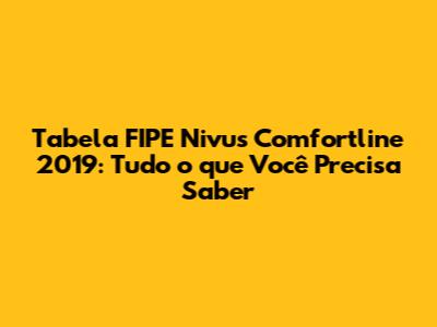Tabela FIPE Nivus Comfortline 2019: Guia Completo E Detalhado