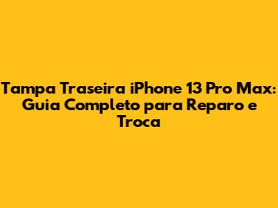 Tampa Traseira IPhone 13 Pro Max: Guia Completo Para Reparo E Troca