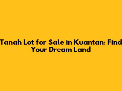 Tanah Lot For Sale In Kuantan: Find Your Dream Land