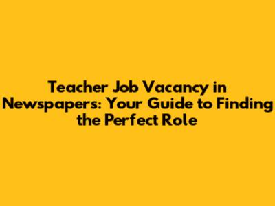 Teacher Jobs: Find Vacancies In Newspapers Now!