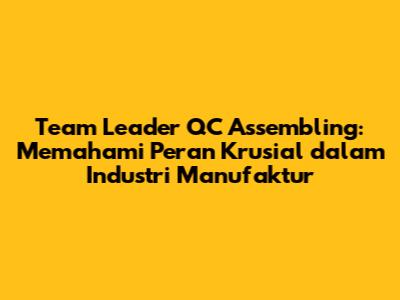 Semoga artikel ini memberikan gambaran yang jelas tentang peran Team Leader QC Assembling. Jika kalian tertarik dengan dunia manufaktur dan memiliki ketertarikan pada kualitas, posisi ini bisa menjadi pilihan karier yang sangat menarik dan menjanjikan. Selamat mencoba, guys!