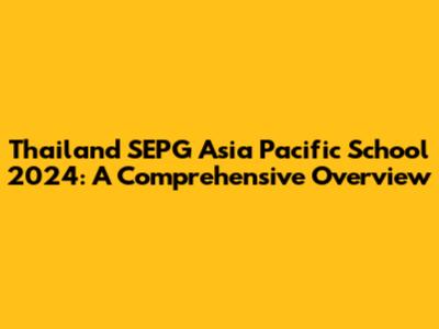 Thailand SEPG Asia Pacific School 2024: All You Need To Know