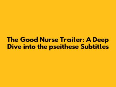 The Good Nurse Trailer: A Deep Dive Into The Pseithese Subtitles