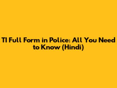 TI Full Form In Police: All You Need To Know (Hindi)
