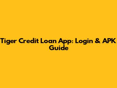 Tiger Credit Loan App: Login & APK Guide