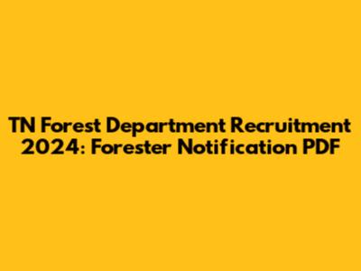 TN Forest Dept Recruitment 2024: Forester Notification PDF
