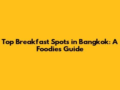 Top Breakfast Spots In Bangkok: A Foodie's Guide