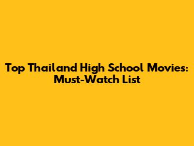 Top Thailand High School Movies: Must-Watch List