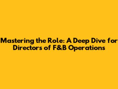 Hey there, awesome F&B pros! Let's talk about what it takes to truly rock it as a Director of F&B Operations. This gig is no joke, guys. It's a high-stakes, fast-paced world where you're juggling a million things to ensure your food and beverage outlets are not just surviving, but thriving. From Michelin-star restaurants to bustling hotel cafes, the responsibilities are vast and varied, demanding a unique blend of culinary passion, sharp business acumen, and a knack for leading people. You're the maestro, the strategist, and the problem-solver all rolled into one. This role isn't just about serving great food; it's about crafting unforgettable experiences, optimizing every operational detail, and driving profitability. We're talking about everything from menu engineering and inventory management to staff training, customer satisfaction, and staying ahead of the latest industry trends. The pressure is on, but the rewards – seeing happy customers, a motivated team, and a successful business – are totally worth it. So, buckle up, because we're about to dive deep into the nitty-gritty of what makes a Director of F&B Operations truly excel.