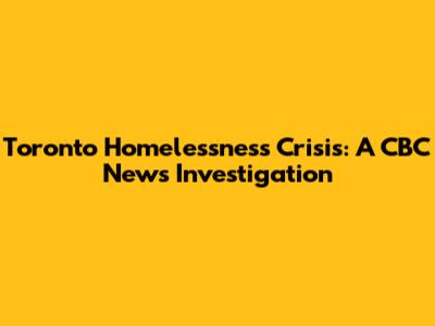 Toronto Homelessness Crisis: CBC News Investigation
