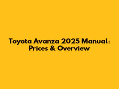 Toyota Avanza 2025 Manual: Prices & Overview