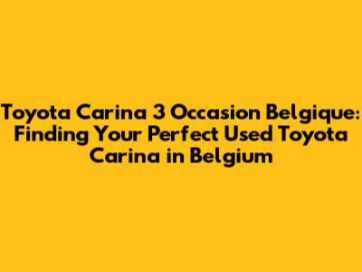Hey guys! Are you on the hunt for a Toyota Carina 3 occasion Belgique? You've come to the right place! Finding the perfect used car can feel like a daunting task, but don't worry, we're here to guide you through the process, especially if you're looking for a Toyota Carina in Belgium. This article will provide you with all the information you need to make an informed decision, ensuring you drive away with a reliable and affordable vehicle.