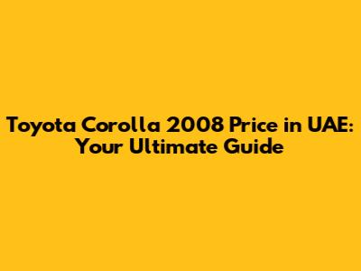 Toyota Corolla 2008 Price In UAE: Your Ultimate Guide