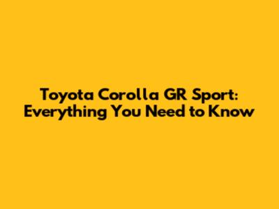 Toyota Corolla GR Sport: Everything You Need To Know