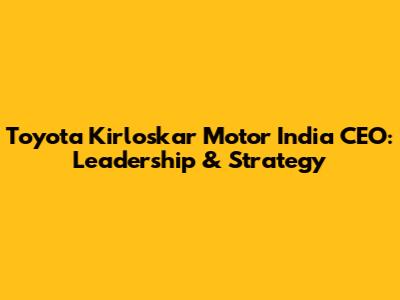 Toyota Kirloskar Motor India CEO: Leadership & Strategy