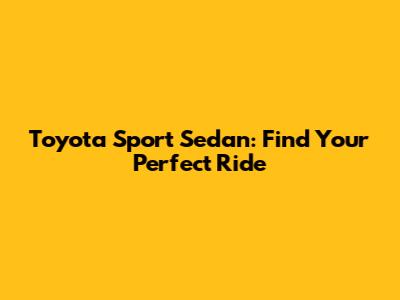 Toyota Sport Sedan: Find Your Perfect Ride
