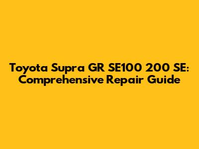 Toyota Supra GR SE100 200 SE: Comprehensive Repair Guide