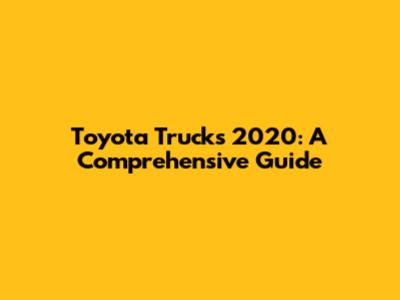 Toyota Trucks 2020: A Comprehensive Guide