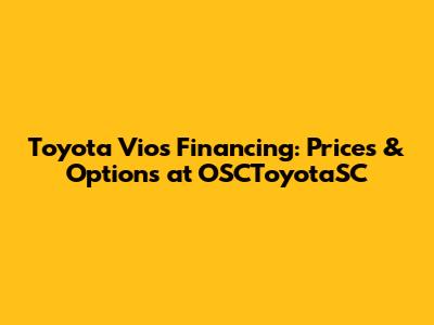 Hey guys! Are you looking to snag a brand new Toyota Vios but feeling a little overwhelmed by the financing options? You've come to the right place! Let's break down everything you need to know about getting your Vios financed through OSCToyotaSC. We'll cover prices, options, and all the insider tips to make the process smooth and easy.