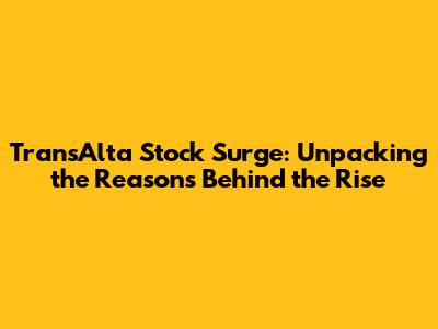 TransAlta Stock Surge: Unpacking The Reasons Behind The Rise