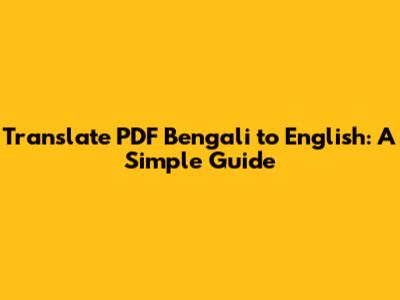 Translate PDF Bengali To English: A Simple Guide