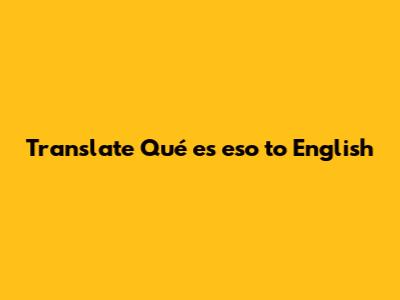 Translate 'Qué Es Eso' To English