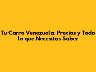 Tu Carro Venezuela: Precios Y Todo Lo Que Necesitas Saber