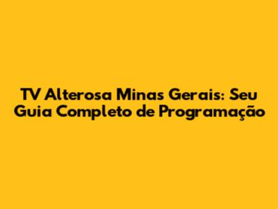 TV Alterosa Minas Gerais: Guia De Programação E Dicas