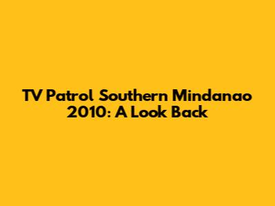 Hey guys! Let's dive into a nostalgic trip back to 2010 and explore what TV Patrol Southern Mindanao was serving up in terms of news. Thinking about local news from over a decade ago can be pretty interesting, right? It gives us a chance to reflect on how much things have changed, what's stayed the same, and maybe even appreciate the journey we've been on as a community. This article aims to provide a comprehensive overview of the key stories, anchors, and overall vibe of TV Patrol Southern Mindanao back in 2010. So, buckle up, and let's get started!