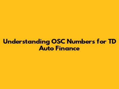Understanding OSC Numbers For TD Auto Finance