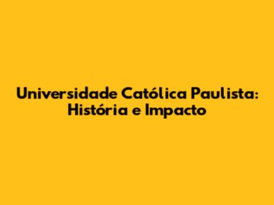 Universidade Católica Paulista: História E Impacto