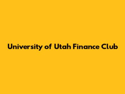 University Of Utah Finance Club: Your Gateway To Finance