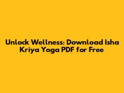 Unlock Wellness: Download Isha Kriya Yoga PDF For Free
