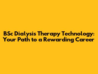 Unlocking BSc Dialysis Therapy Technology: A Career Guide