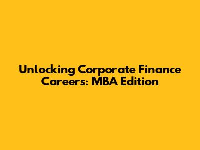 Unlocking Corporate Finance Careers: MBA Edition
