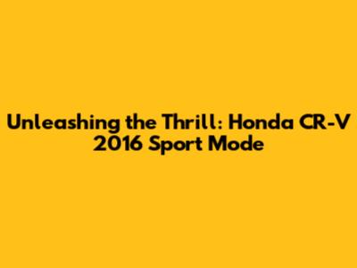 Unlocking Fun: Honda CR-V 2016 Sport Mode Explained