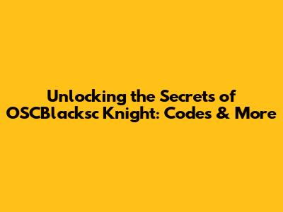 Unlocking The Secrets Of OSCBlacksc Knight: Codes & More